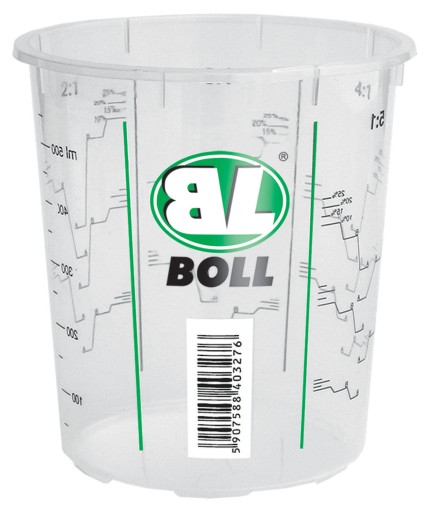 Uniwersalny pojemnik z przeźroczystego tworzywa z nadrukowaną podziałką umożliwiającą przygotowanie mieszanki w żądanej proporcji.