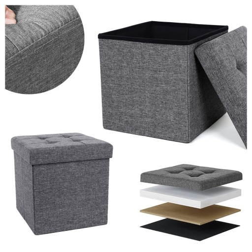 PUFA PIKOWANA tapicerowana siedzisko podnóżek ZE SCHOWKIEM 38cm SZARY