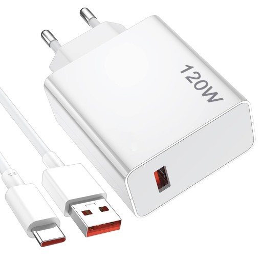 БЫСТРОЕ СЕТЕВОЕ ЗАРЯДНОЕ УСТРОЙСТВО 120ВТ ДЛЯ СМАРТФОНА + КАБЕЛЬ TYPE-C 1М