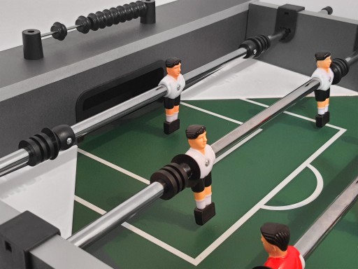 Stół SOCCER FAN do gry w piłkarzyki wykonano z wysokiej jakości jednoczęściowej, lakierowanej płyty wiórowej, a całość waży 36.5 kg. Figurki piłkarzyków zrobione są z utwardzonego kauczuku, dzięki czemu znakomicie odbijają piłeczkę, a także są odporne na wszelkie urazy mechaniczne. Z nimi bez trudu trafisz w piłeczkę i zdobędziesz kolejny punkt. Manualny licznik wyników umieszczony w bocznym polu sprawi, że bez problemu ustalisz, kto wygrał mecz. Trambambula SOCCER FAN to w pełni funkcjonalny sprzęt, do którego dołączono w komplecie 2 piłeczki. Na co czekasz? Zamów ten wyjątkowy stół, rozstaw go i ciesz się możliwością rozegrania dynamicznej partii piłkarzyków!