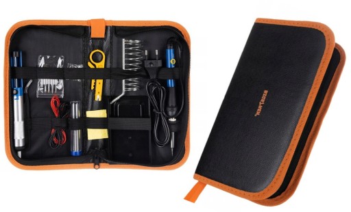 - Ściągacz izolacji, odsysacz, pęseta i podstawka pod lutownicę dołączone do zestawu usprawnią pracę