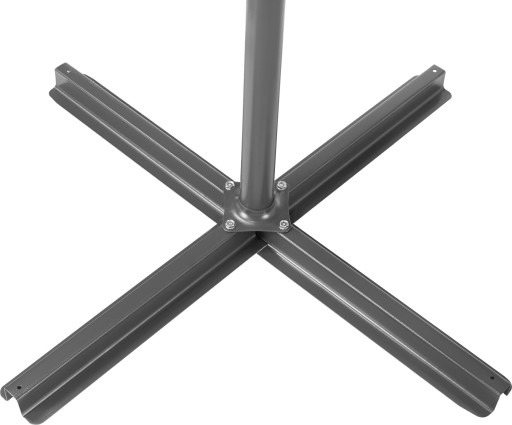 - Krzyżowa podstawa parasola, dzięki swoim rozmiarom, znajdzie odpowiednie miejsce w każdym ogrodzie. Pasuje do większości obciążników, można ją nawet zabetonować na stałe.