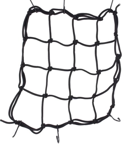 Siatka wykonana z elastycznych linek, wyposażona jest w 6 metalowych haczyków mocujących bagaż. Wykonana jest z solidnego, wytrzymałego i elastycznego materiału. Jest doskonałym rozwiązaniem dla każdego zmotoryzowanego użytkownika.
