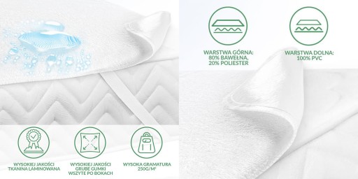 Ochraniacz na materac 80x160 cm nieprzemakalny antyalergiczny POLSKI