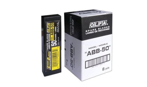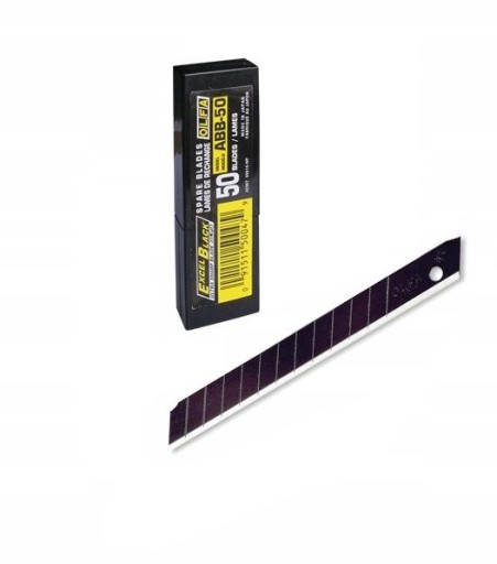 Ostrza do miękkich materiałów Olfa ABB-50 - w stosunku do standardowych ostrzy AB, w czarnych ostrzach ABB podwyższona została twardość stali, zmniejszony został kąt ostrzenia i zwiększona szerokość ostrzenia. W efekcie tych zmian początkowa zdolność przecinania ostrzy ExcelBlack okazała się o 25% wyższa od standardowych (srebrnych) ostrzy OLFA a w stosunku do ostrzy innych producentów osiągnęła wynik blisko dwukrotnie wyższy.