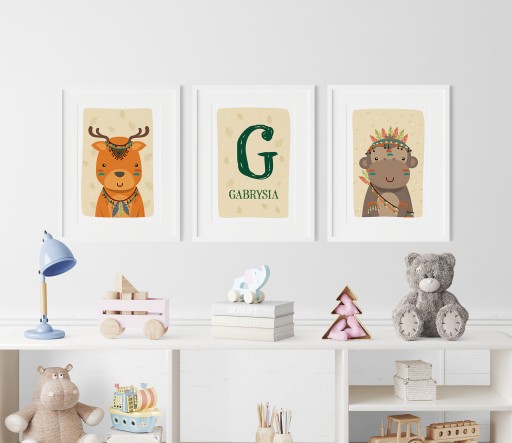 3 КАРТИНЫ ДЛЯ ДЕТСКОЙ КОМНАТЫ А4 НАБОР БОХО ПОСТЕРЫ ИМЯ РЕБЕНКА ПОДАРОК