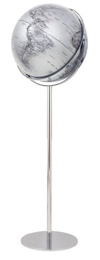 Globus Apollo łączy w sobie purystyczny design z funkcjonalnością i wysoką jakością. Osadzony na chromowanej, metalowej ramie i stabilnej podstawie pokrytej filcem zabezpieczającym podłogę. Dzięki dwóm osiom, globus można obracać na wszystkie strony. Cechą charakterystyczną i nadającą globusowi wyjątkowego charakteru jest relief gór.