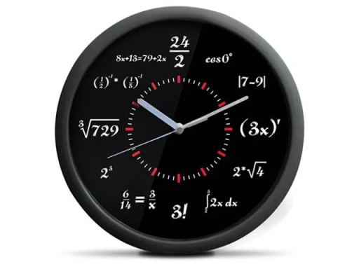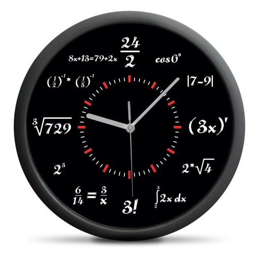 Zegar matematyka pokazuje czas w oryginalny sposób. Każda godzina wyrażona jest za pomocą innej zagadki matematycznej. Spraw sobie satysfakcję i rozwiąż każdą z nich! To świetny sposób na nudę oraz na to, by stać się mistrzem matematycznych łamigłówek!