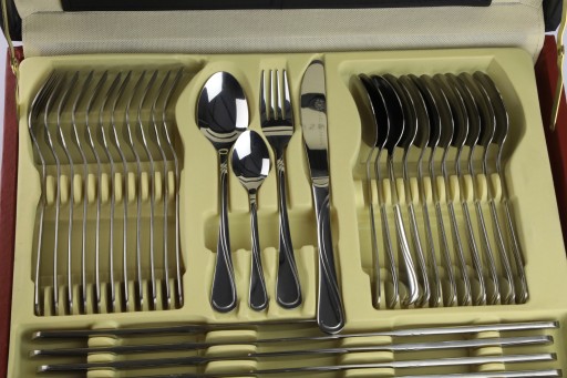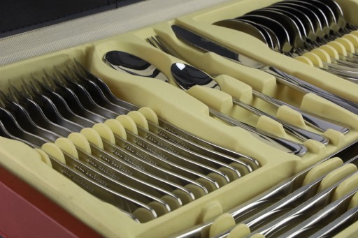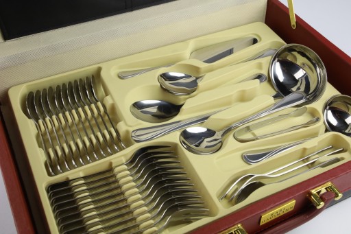 Zestaw NINA składa się z 72 elementów, co pozwala na kompleksowe wyposażenie stołu dla 12 osób. To idealny wybór zarówno na codzienne posiłki w gronie rodziny, jak i na specjalne okazje, takie jak przyjęcia czy uroczyste kolacje. Elegancka walizka zamykana na zamek szyfrowy, w której zapakowano sztućce, nie tylko chroni je przed zewnętrznymi czynnikami, ale również ułatwia ich przechowywanie i transport.
