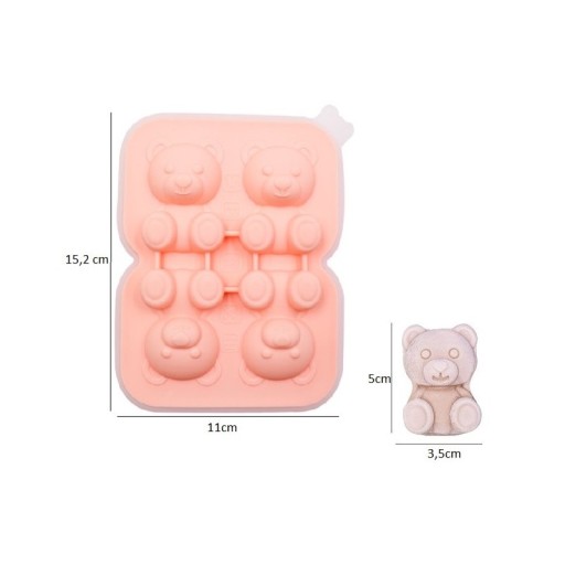 СИЛИКОНОВЫЕ ФОРМЫ ДЛЯ КУБИКОВ ЛЬДА - 4 МИШКИ - РОЗОВЫЕ