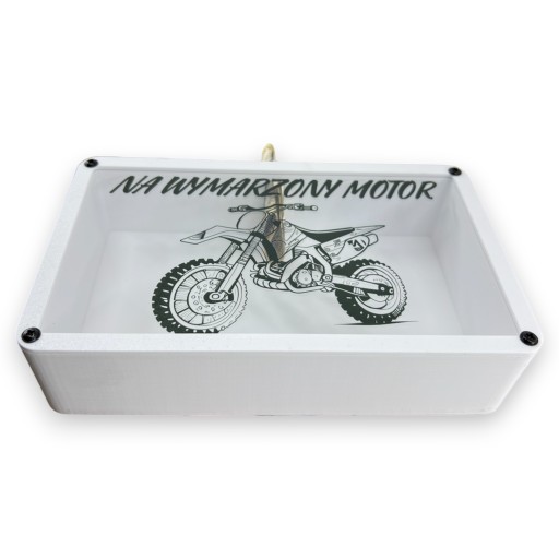 Skarbonka z nazwiskiem grafiką pojemnik, duża na prezent na wymarzony motor cross
