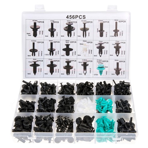 НАБОР АВТОМОБИЛЬНЫХ ЗАЖИМОВ 456 ЭЛЕМЕНТОВ. + СЪЕМНИК ОБИВКИ