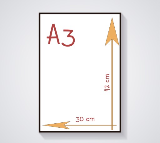 Wymiary: Obrazki w rozmiarze A3 mają standardowy rozmiar 30 cm na 42 cm