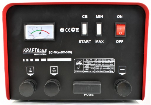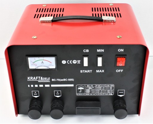 Urządzenie przeznaczone jest do ładowania akumulatorów 12V oraz 24V i pojemności od 20Ah do 500Ah. Zastosowanie kilkustopniowej regulacji ładowania i rozruchu opartej na przełącznikach pozwala na szybkie ładowanie dużych akumulatorów w przypadku gdy zależy nam na czasie, jak również na wolne ładowanie niskim natężeniem prądu. Takie rozwiązanie pozwala na utrzymanie akumulatora w doskonałej kondycji przez długi czas i zapobiega jego uszkodzeniom.
