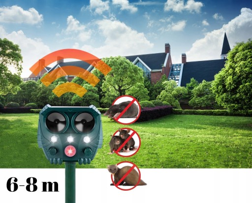 ♻️ Wydajny odstraszacz zwierząt działający na zasadzie emitowania różnej częstotliwości ultradźwięków oraz mocnego światła LED.