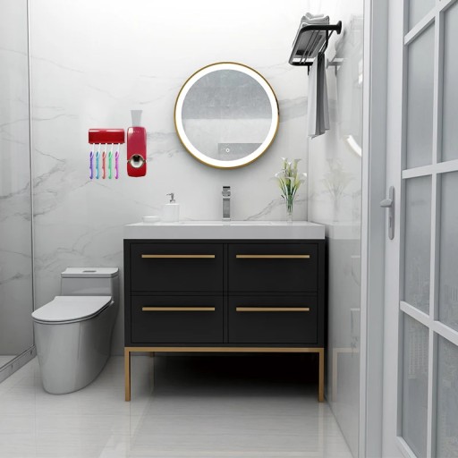 The toothbrush holder can hold up to 5 toothbrushes.