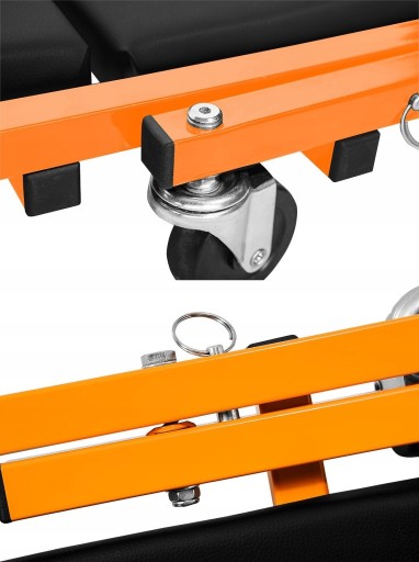 Leżanka jest wyposażona w 6 obrotowych kółek, co ułatwia jej poruszanie i manewrowanie w warsztacie czy garażu.