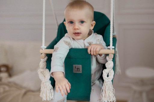 ✅wzmocnione siedzisko niewidoczną sklejka wszytą w poduszkę pod pupką dziecka co sprawia że huśtawka się nie zniekształca