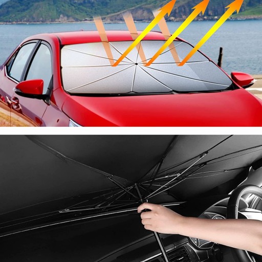 ☀️ 【Łatwy do złożenia i przechowywania】 parasol przeciwsłoneczny na przednią szybę w stylu parasola działa tak samo jak zwykły parasol i można go bardzo łatwo otworzyć i złożyć w ciągu kilku sekund. Samochodowa osłona przeciwsłoneczna jest bardzo praktyczna do codziennego użytku, a składana konstrukcja ułatwia przechowywanie i nie zajmuje miejsca w samochodzie