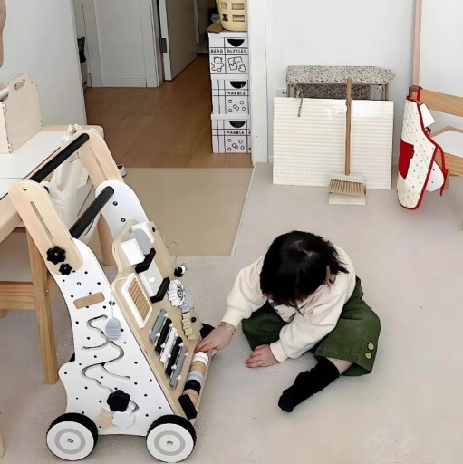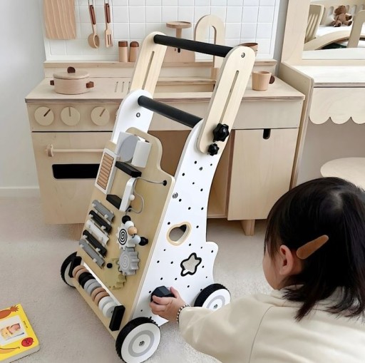 Chodzik, jeździk, pchacz - ta wielofunkcyjna zabawka edukacyjna zapewni Twojemu dziecku wiele godzin radości i nauki. Wykonana z solidnego drewna, została zaprojektowana z myślą o wspieraniu rozwoju najmłodszych dzieci w sposób kreatywny i bezpieczny.