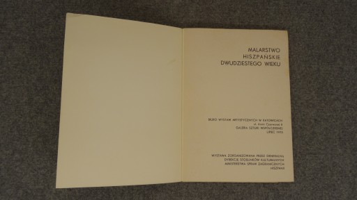 Książka: jak w tytule. Katalog wystawy z lipca 1973r. Biuro Wystaw Artystycznych w Katowicach. Galeria Sztuki Współczesnej. Wystawa zorganizowana przez Generalną Dyrekcję Stosunków Kulturalnych Spraw Zagranicznych Hiszpanii.