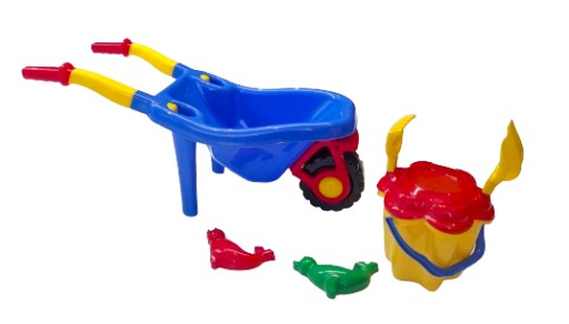 ПЛАСТИКОВАЯ тачка с ведром, лопатой и формовщиками для песка HEMAR.