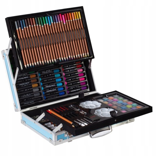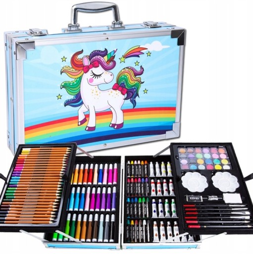 Zestaw artystyczny 144 elementów rozbudzi wyobraźnię oraz kreatywne zdolności Twojego dziecka. Magiczna walizka zawiera wszystko co potrzebne do zabawy: kredki, pisaki, pastele, farby i inne przydatne do twórczości artystycznej przedmioty: linijkę, gumkę, pędzelek itp.