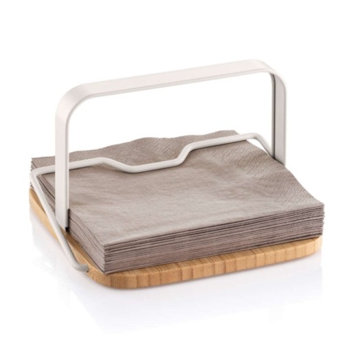 Serwetnik został wykonany z naturalnego drewna bambusowego z antypoślizgowym wykończeniem oraz wysokiej jakości metalu o wytrzymałej powierzchni.