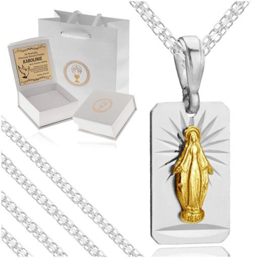 SREBRNY ŁAŃCUSZEK + MEDALIK MATKA BOSKA CUDOWNA 925 GRAWER PREZENT KOMUNIA