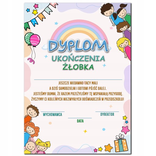 DYPLOM UKOŃCZENIA ŻŁOBKA to idealna propozycja dla dzieci z okazji zakończenia edukacji w żłobku.