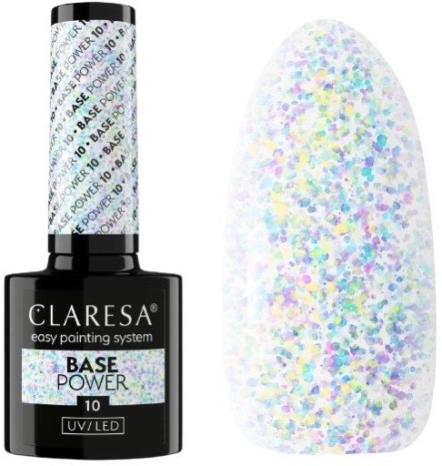 POWER 10 CLARESA BASE С кусочками переливающейся самовыравнивающейся фольги.