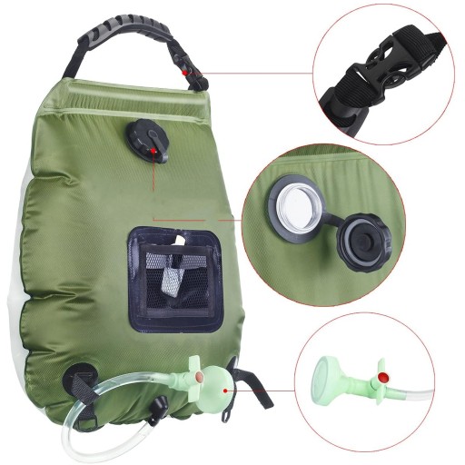 Wykonany z wytrzymałego materiału, który pozwala na łatwe pakowanie i transportowanie prysznica. Zbiornik ma pojemność 20l, aby zapewnić komfortowe korzystanie z prysznica nawet dla kilku osób.