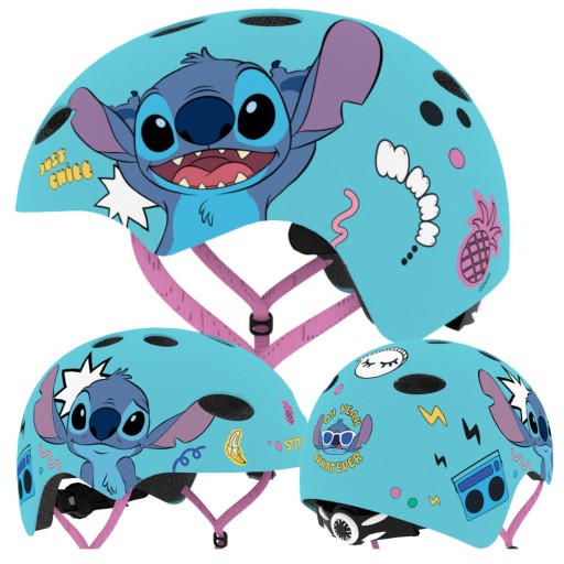 Na zewnątrz wykonany jest z trwałej i wytrzymałej powłoki ABS, wewnątrz znajduje się absorbująca uderzenia pianka EPS. Kask ozdobiono kolorowymi wzorami przedstawiającymi bohaterów z bajek Disney.