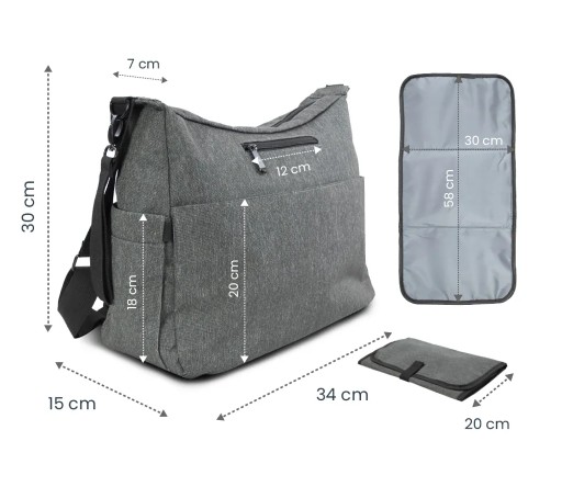 TORBA DO WÓZKA DZIECIĘCEGO ORGANIZER DLA MAMY TATY SZARY