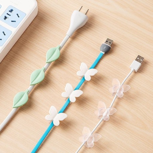 Ozdobny uchwyt pomaga utrzymać przewody oraz kable w jednym miejscu. Doskonale sprawdzi się przyklejony do takich miejscach jak do ściany, na szafkach nocnych, na szafce telewizyjnej, do biurka, itp. Uchwyty na przewody i kable mogą być przyczepiane praktycznie do każdej powierzchni. Produkt posiada oryginalny design - jest w kształcie motylka. Uchwyt posiada płaskie wcięcie, które pasuje do większości kabli i przewodów dostępnych na rynku.