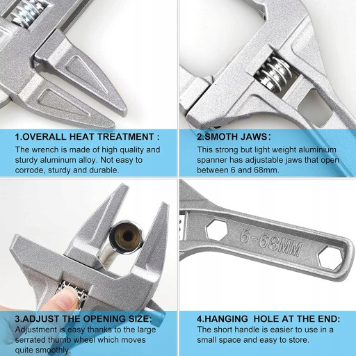 Разводной ключ 6–68 мм с большим отверстием и короткой ручкой