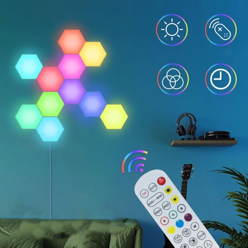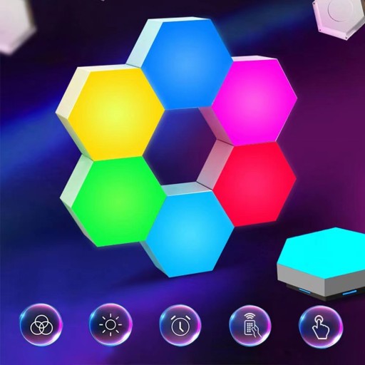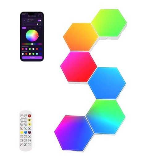 НАБОР СВЕТОДИОДНЫХ ЛАМП ЦВЕТНАЯ 6X ШЕСТИГРАННАЯ ПАНЕЛЬ WIFI SMART С ПУЛЬТОМ ДИСТАНЦИОННОГО УПРАВЛЕНИЯ