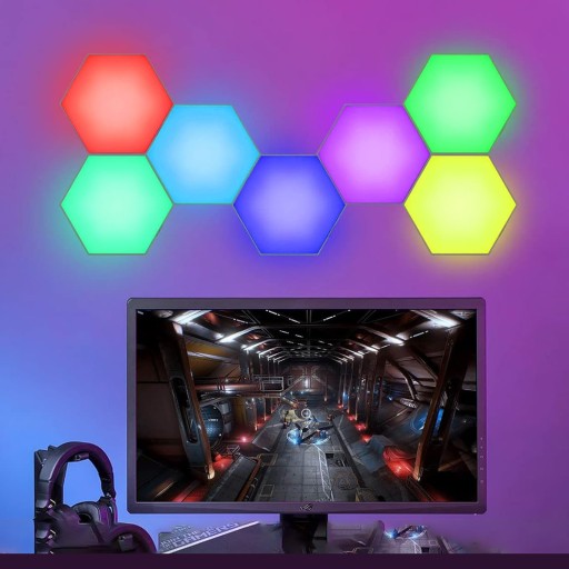 🌈LAMPA LED ZESTAW KOLOROWE 6 X PANEL HEKSAGON WIFI SMART Z MUZYKĄ SYNC🎼