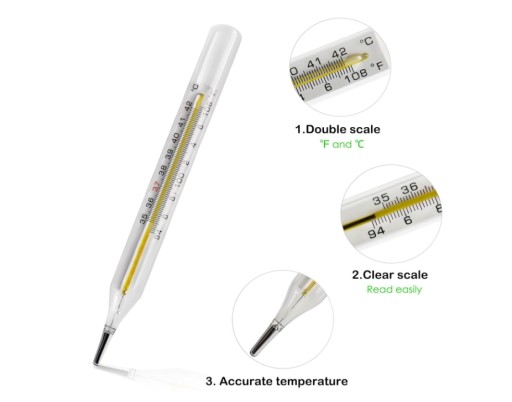 ❤️Szklany termometr doustny: 35-42°C Klasyczny niecyfrowy termometr dla wszystkich grup wiekowych Dokładny i łatwy do odczytu test gorączki 4 szt.❤️