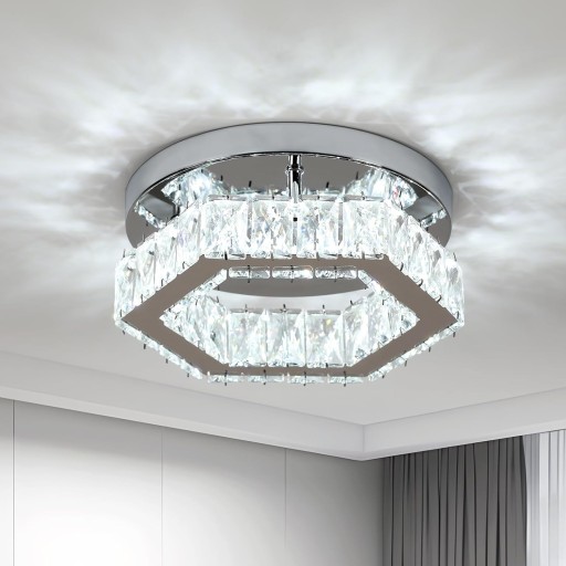 Odkryj nowoczesną lampę sufitową LED marki TEALIGHT , która łączy w sobie wyjątkowy sześciokątny kształt , chromowane wykończenie oraz połysk kryształów K9 . Ta lampa to doskonałe połączenie luksusu i funkcjonalności, oferując trójkolorową regulację oświetlenia w różnych odcieniach bieli - od ciepłej, przez neutralną, aż po zimną.