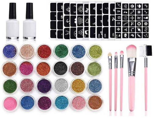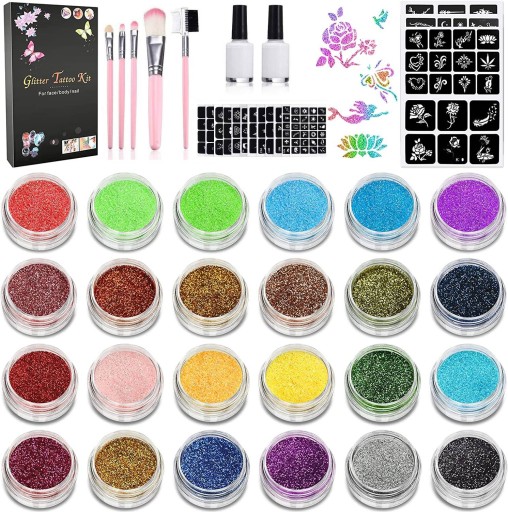 ✅ DUŻA ILOŚĆ BROKATÓW - bądź kreatywny i twórz tatuaże dzięki temu wspaniałemu zestawowi. Kolory są mieniące i wyraźne, co daje oszałamiający efekt. Przeznaczone dla wszystkich grup wiekowych, w tym dzieci i dorosłych. 24 różne kolory dadzą Ci możliwość dużego wyboru.