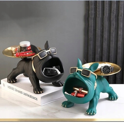 Скульптура собаки с подносом Фигурка для хранения бульдога