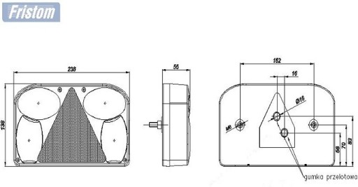 - lampa zespolona ft-088, która spełnia funkcje drogowe - światła, kierunkowskazy, pozycyjne, stop, trójkąt odblaskowy, podświetlenie tablicy