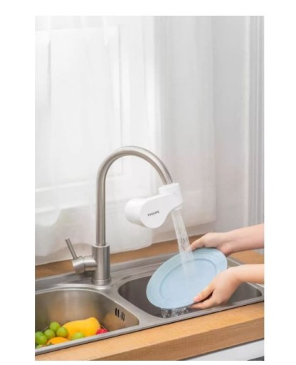 Smaczna i czysta wodaCiesz się czystą i smaczną wodą za każdym razem, gdy otworzysz kran, dzięki systemowi mikrofiltracji Philips X-Guard, który redukuje do 99% zawartości chloru i substancji pogarszających smak. Łatwa instalacja za pomocą jednego kliknięcia umożliwia szybkie dopasowanie do kranu