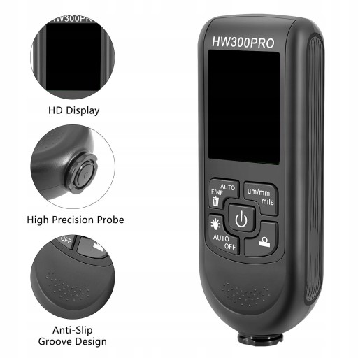 Precyzja: zakres pomiarowy wynosi 0-2000UM. Pomiar powłoki FE/NFE. Wysoka precyzja rozdzielczości do 1um.