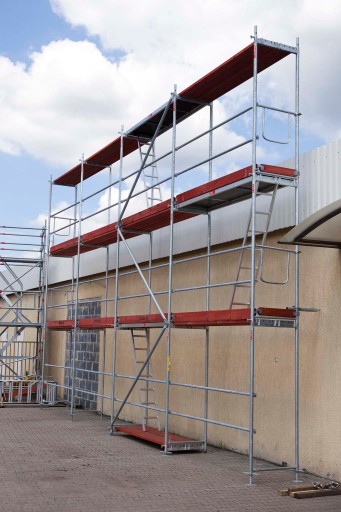 Za pomocą uniwersalnego systemu rusztowań Plettac można szybko i bezpiecznie obudować rusztowaniami najróżniejsze budynki.