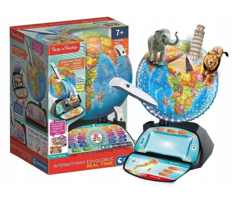 Interaktywny globus do odkrywania piękna świata. Aby rozpocząć podróż, dziecko będzie musiało skierować długopis na mapę świata, aby odkryć wszystkie informacje o wybranym miejscu.