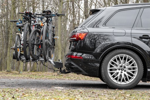 Pojemność bagażnika umożliwia łatwy transport nawet ciężkich rowerów górskich oraz rowerów elektrycznych. Na platformie możesz umieścić nawet cztery 15-kilogramowe rowery.