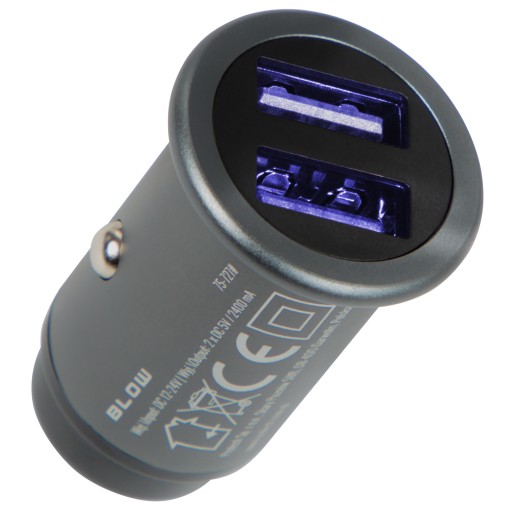 Wysokiej jakości ładowarka samochodowa z 2x gniazdami USB-A. Produkt charakteryzuje się stylowym wzornictwem oraz wykonaniem z wysokiej jakości materiałów przyjaznych środowisku. Dedykowana do zasilania nawigacji GPS ,tabletów, smartfonów , przenośnych konsol oraz innych urządzeń.