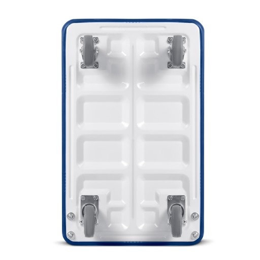 - Wózek posiada 2 w pełni obrotowe koła gumowane z metalowym wzmocnieniem, co pozwala na sprawne i precyzyjne manewrowanie wózkiem.